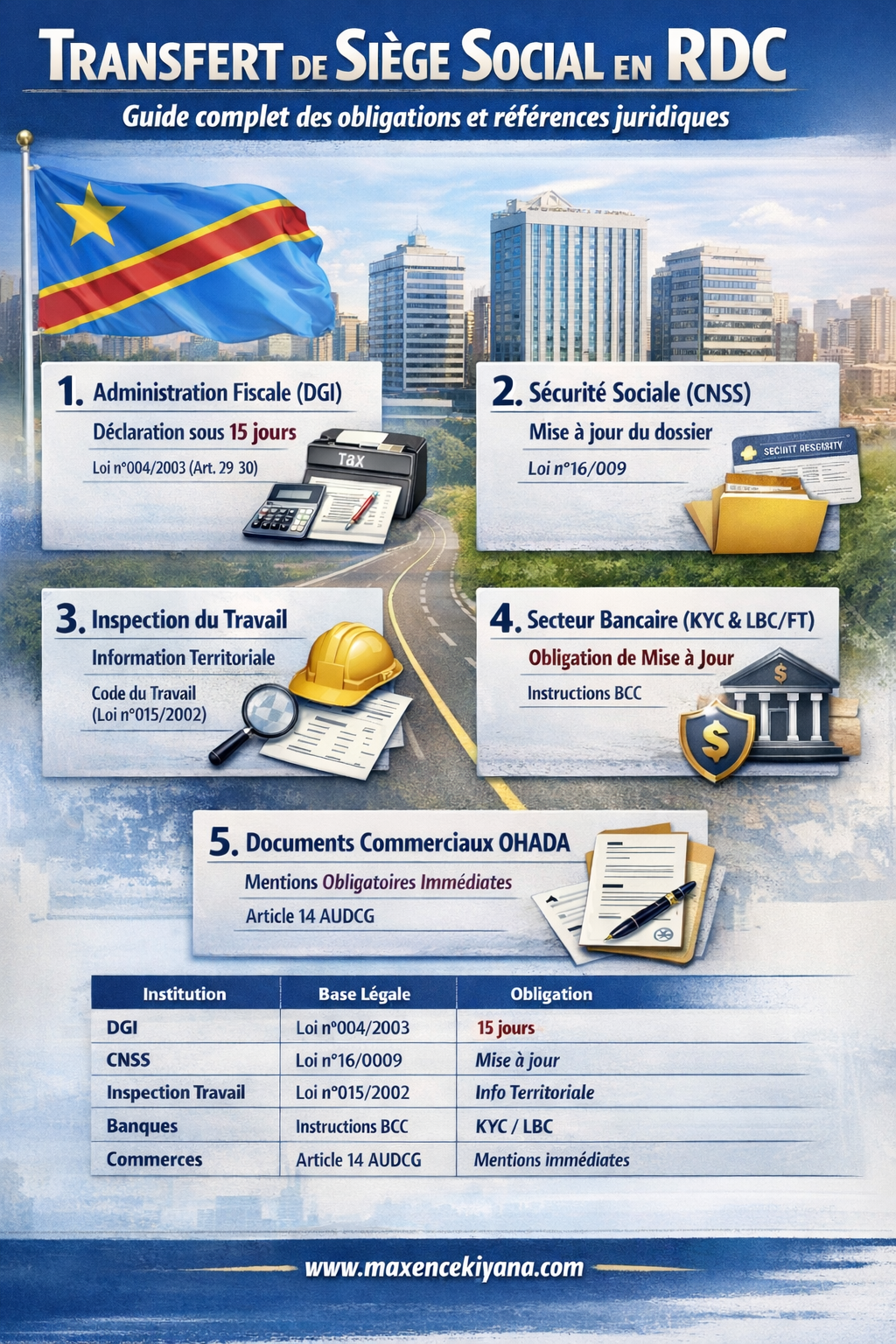 Transfert de siège social en RDC : Guide complet des obligations et références juridiques