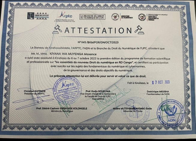 Maxence Kiyana – Avocat à Kinshasa RDC