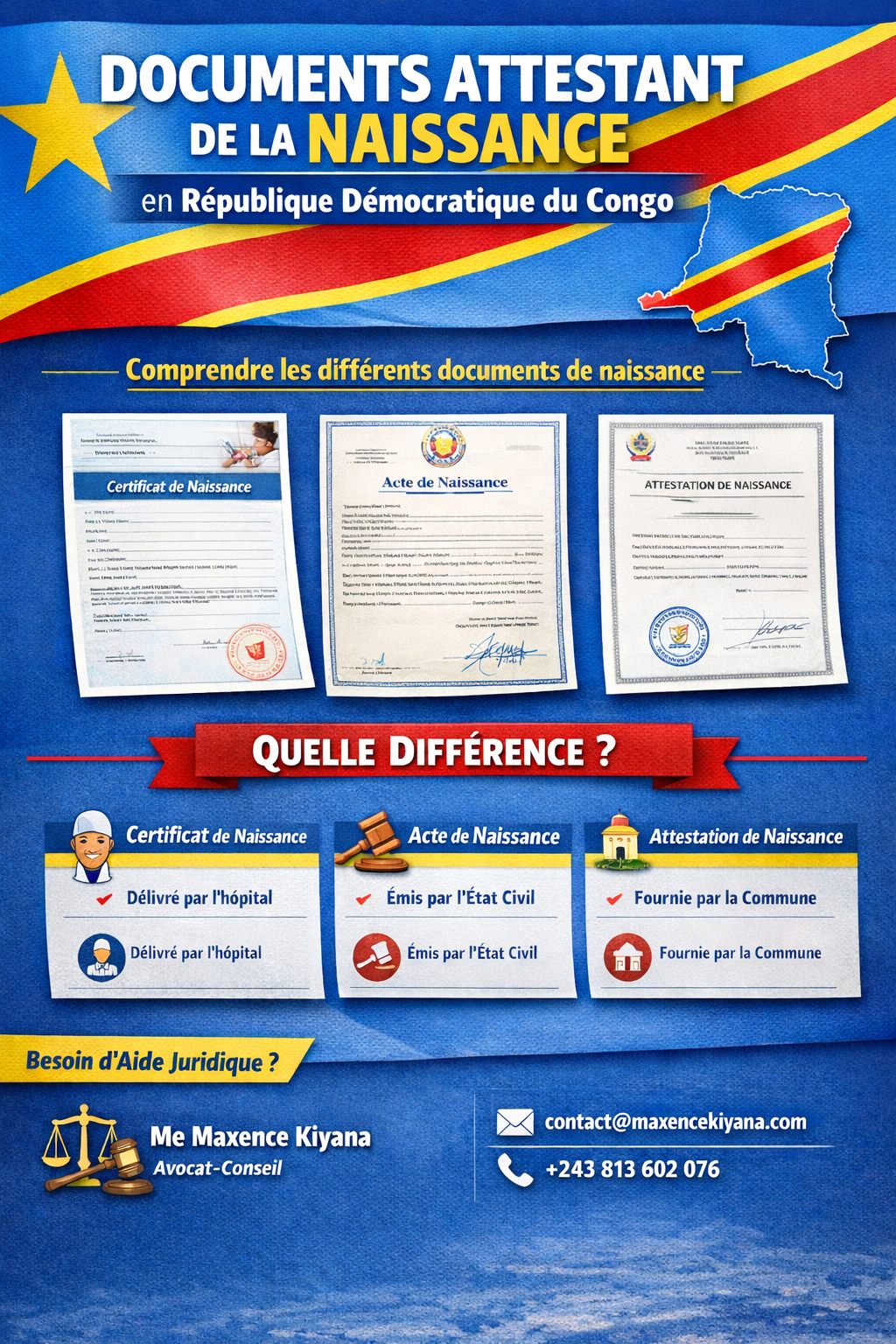 Documents attestant de la naissance en République Démocratique du Congo
